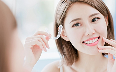 ご案内した治療計画に同意いただければ治療スタートです。治療期間中は、歯科医師の指示に従って、患者さん自身でマウスピースを順次取り替えていただき、2ヵ月ごとの定期通院の際には矯正治療の進ちょくやお口のトラブルなどを確認しながら治療を進めます。すべてのマウスピースの装着が完了すれば、矯正治療は終了です。