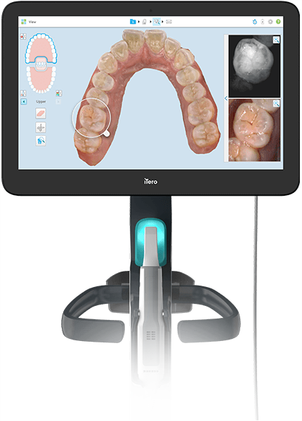 口腔内スキャナー(iTero)は、マウスピース矯正に特化した歯科用のデジタルスキャナーです。歯列を立体的にスキャンし、高精度なデータを取得することができます。マウスピース矯正では、1枚ごとのわずかな歯の動きの積み重ねが治療結果に直結するため、治療開始時のスキャン精度が治療全体の完成度を左右する重要なポイントとなります。口腔内スキャナー(iTero)を使用することで、フィット感や治療の精密性が向上し、ズレや再作製といったトラブルのリスクも抑えられます。また、取得したデータはそのままクラウド経由で送信されるため、マウスピースの作製もスムーズに進み、矯正治療を早期に開始できる点も大きなメリットです。