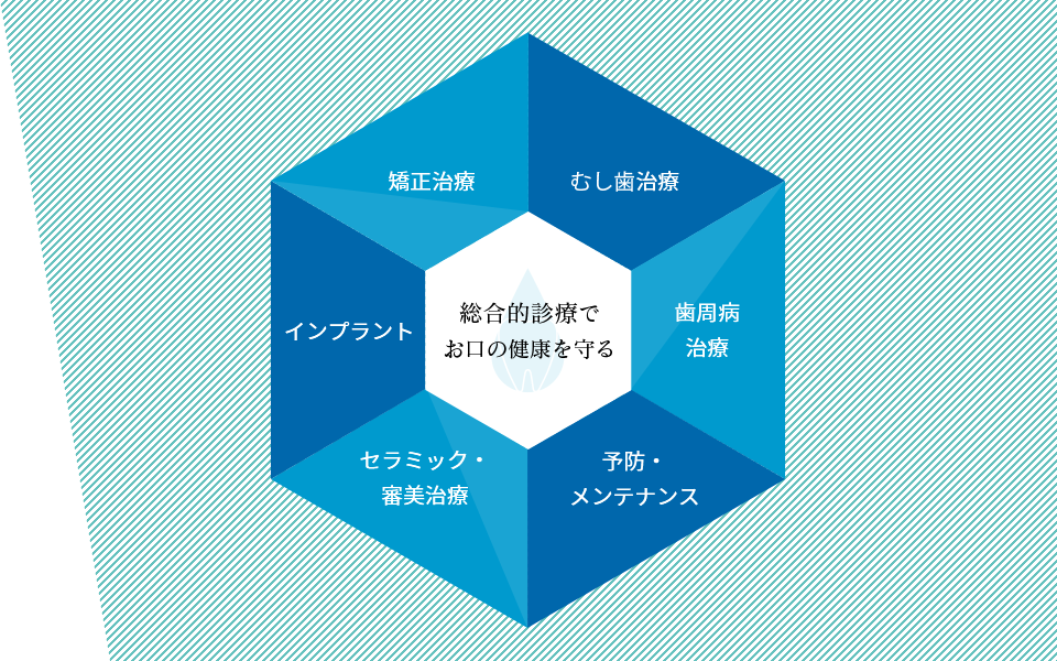 矯正を専門とする歯科医院の場合、治療期間中にむし歯などのトラブルが発生したり、他の治療が必要となったりした場合、他院を受診しなければなりません。一方、当院は幅広い診療に対応する総合歯科クリニックです。むし歯などの治療はもちろん、審美治療などのご要望にもスピーディーに対応いたします。